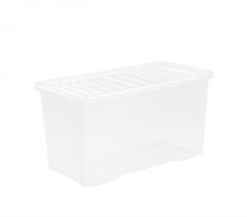 The Wham Crystal Storage Box & Lid Clear - 110Ltr Is A High Quality, Stackable Box With A Secure Clip On Lid, Made From Heavy Duty Polypropylene Making It Tough And Durable. This Storage Container Is Ideal For Home, Office And School Storage. Pallet Qty 5. Stackable Durable Plastic Secure Clip On Lid Dimensions: Height: 395mm Length: 420mm Width: 795mm