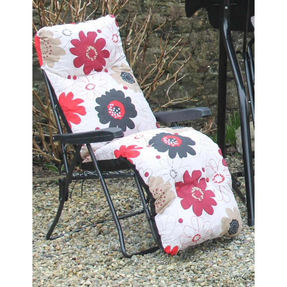 The Culcita Multi-Position Tubular Relaxer features an adjustable backrest and footrest, a deluxe padded cushion and armrests.