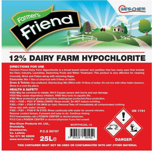 FARMERS FRIEND 12% HYPOCHLORITE CLEANER 25LTR