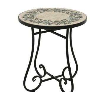 The Kaemingk SANTORINI MATT BLACK Mosaic Side Table features a stunning circular mosaic tabletop in warm earthy tones of brown, yellow, and white. Supported by a brown-coloured metal frame with gracefully curved legs, it brings a touch of elegance to any outdoor setting. It is finished with e-coating and powder coating for protection. It measures 390mm x 460mm. Eye catching geometric mosaic design with star pattern Dual layer e-coating and powder coating for durability Versatile design suitable for indoor and outdoor use Dimensions: Height: 460mm Width: 390mm Weight: 6.3kg