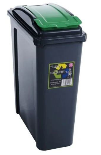 Wham Green 25L Recycling Bin 25 Litre Slimline Recycling Bin Clip On Lid With Hinged Coloured Flap Dimensions: 40 x 19 x 51cm