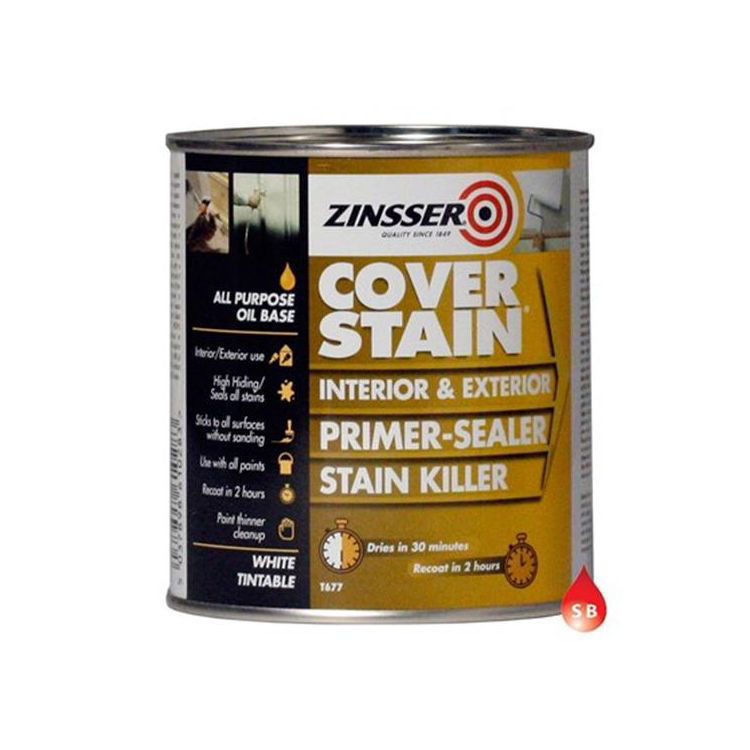 Primer-Sealer Stain Killer Base: Oil-based Use: Interior & Exterior Clean tools with: Paint thinner Coverage: 10m² Drying time: Dries in 30 minutes. Paintable in 2 hours Container size: 1L